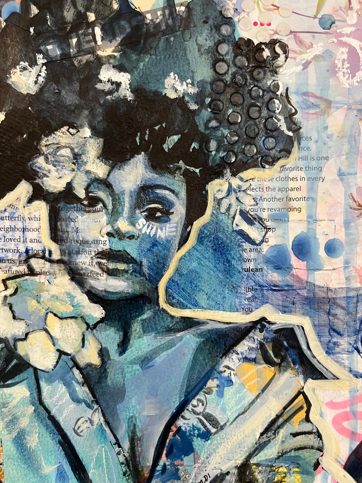 I'm drawn to expressive figures and symbolic objects that speak to worth, resilience, and the courage to live authentically, oftentimes featuring a small affirmation located inside the painting.