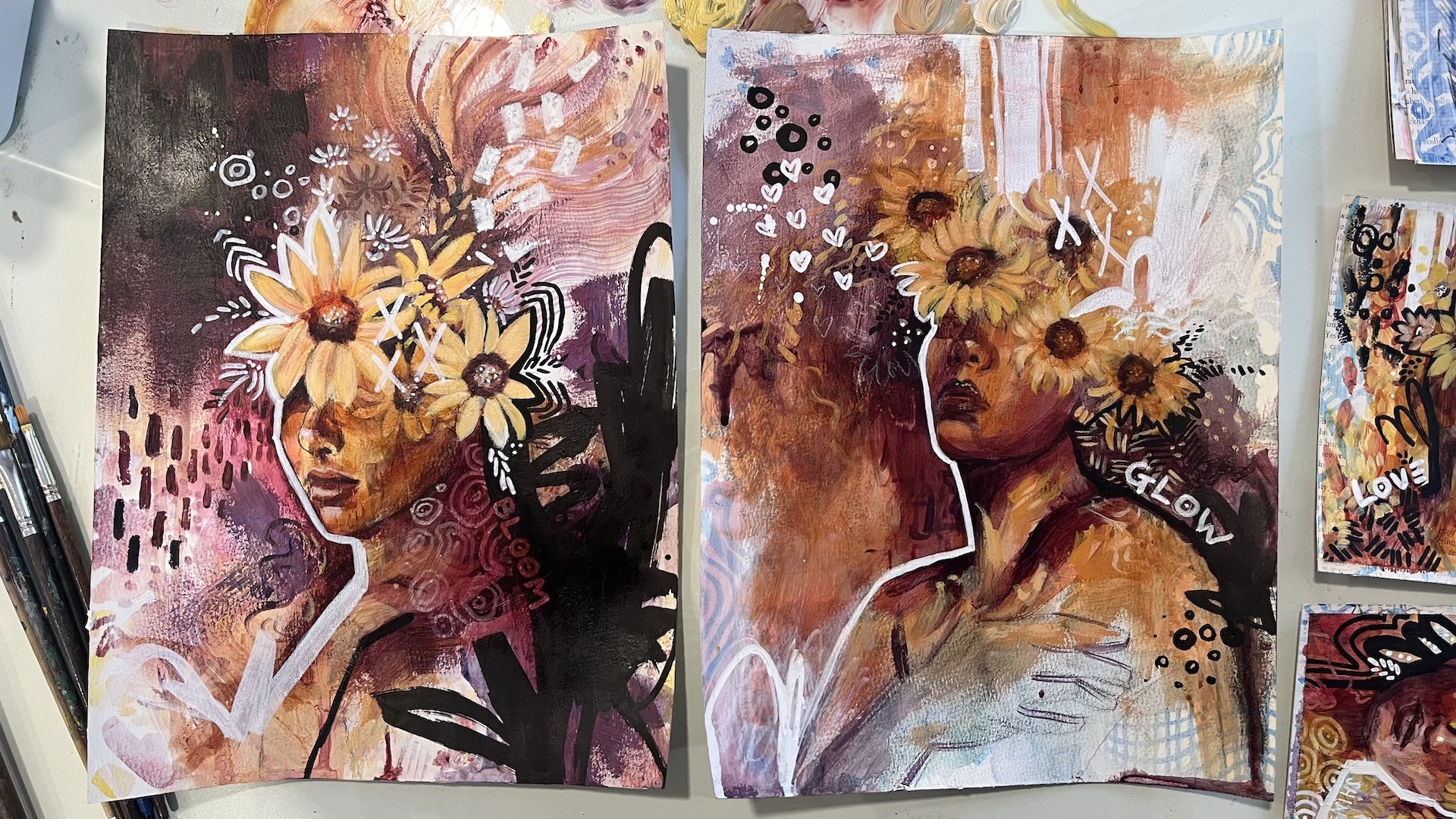 Each piece is for the woman who keeps showing up, turning toward her own light, and choosing to bloom, despite the chaotic winds of life. May these paintings remind you to wear your crown and see how wildly wonderful you are.