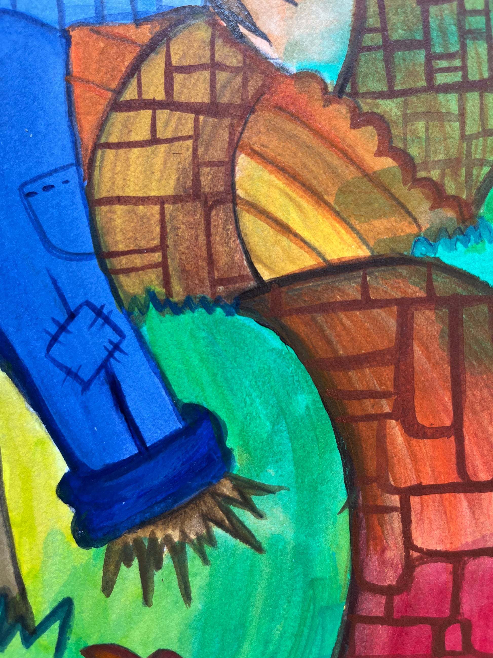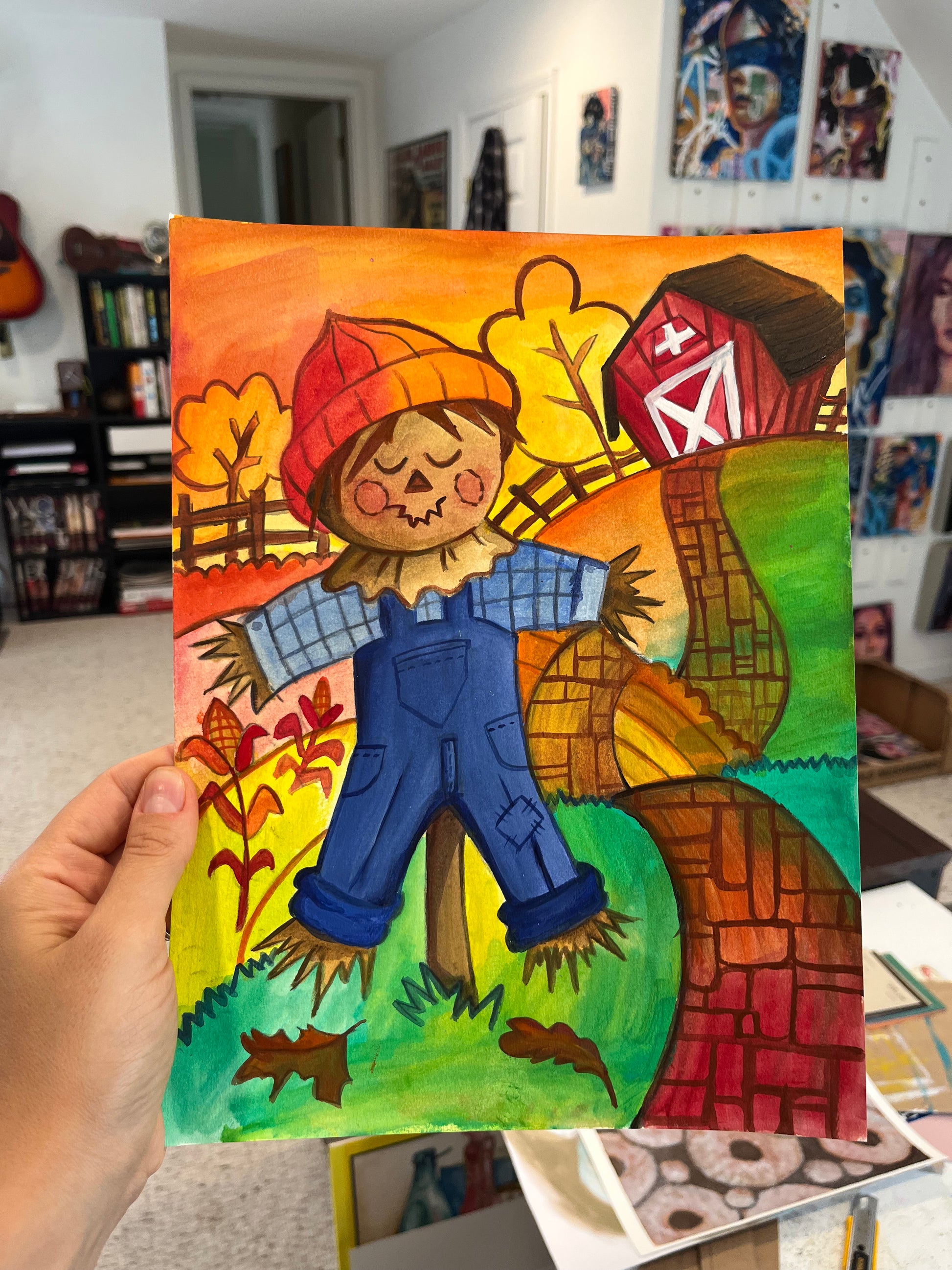 9x12" original painting of a scarecrow on a farm on paper