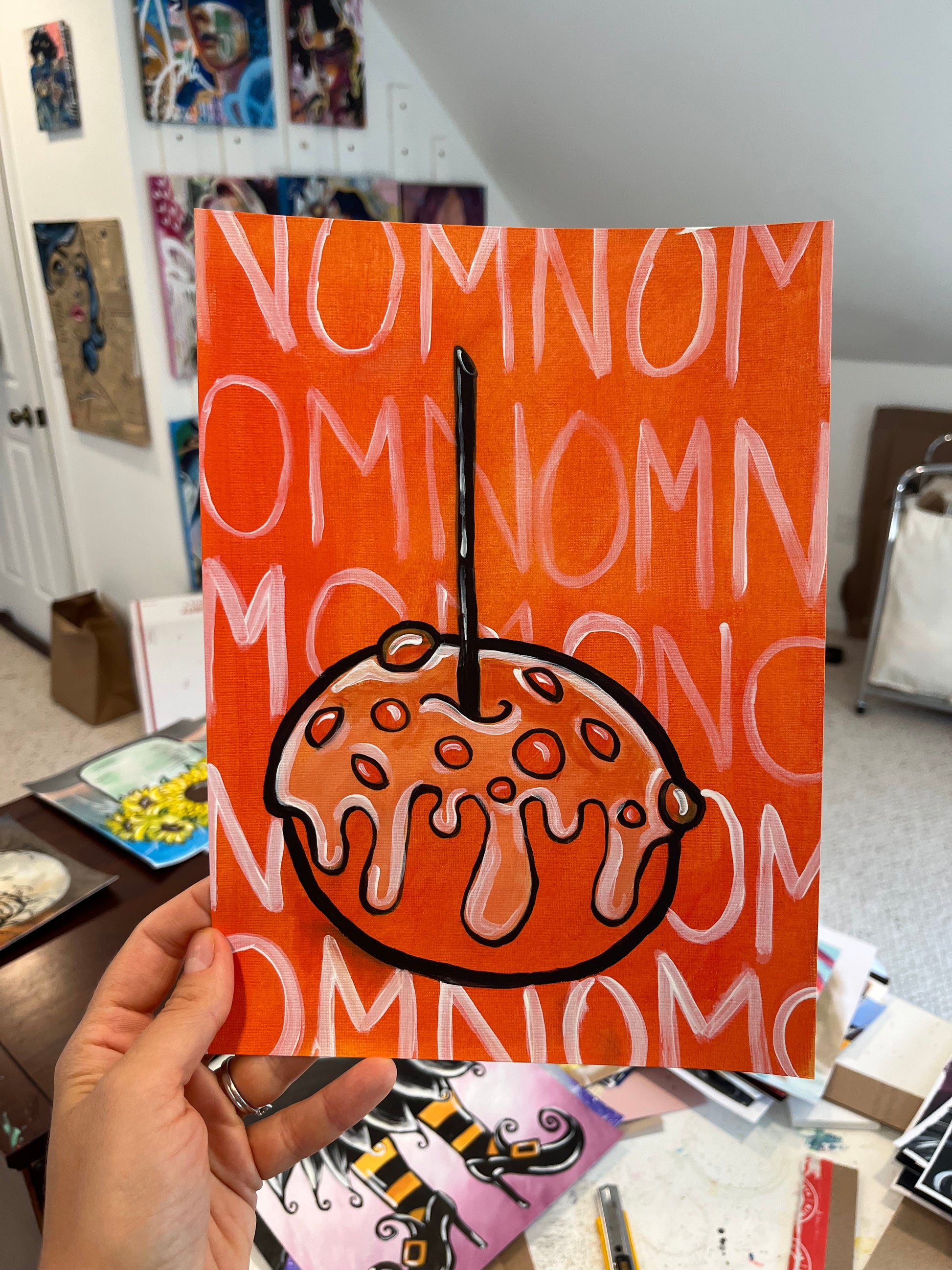 8x11" original painting of a candied apple in pop art style