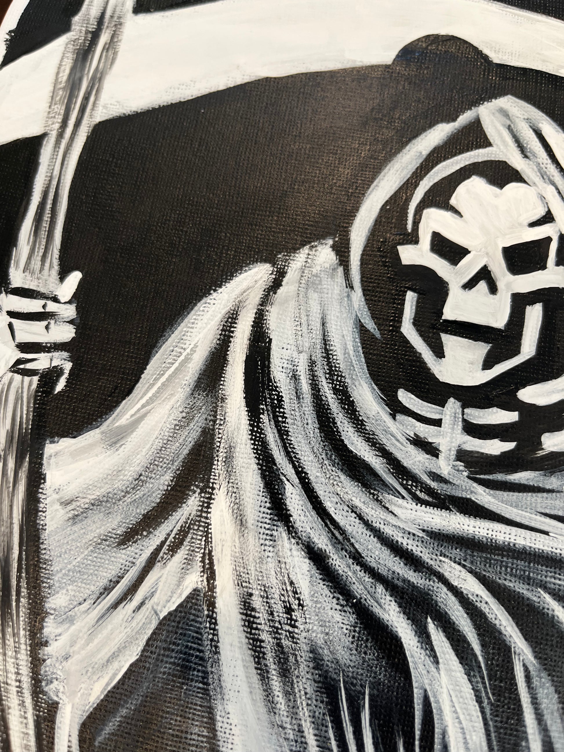Every painting you purchase in The Great Halloween Art Sale gives you 1 entry into a painting raffle giveaway where you'll get a chance to win my mixed media painting "Cara Mia", inspired by Morticia Addams.