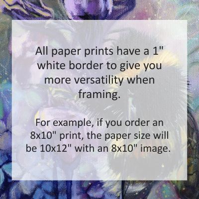 🎨 Fine Art Paper Prints – Giclée printed on thick, museum-quality fine art paper, these prints offer a rich, smudge-resistant finish with a 1" white border for versatile framing options.