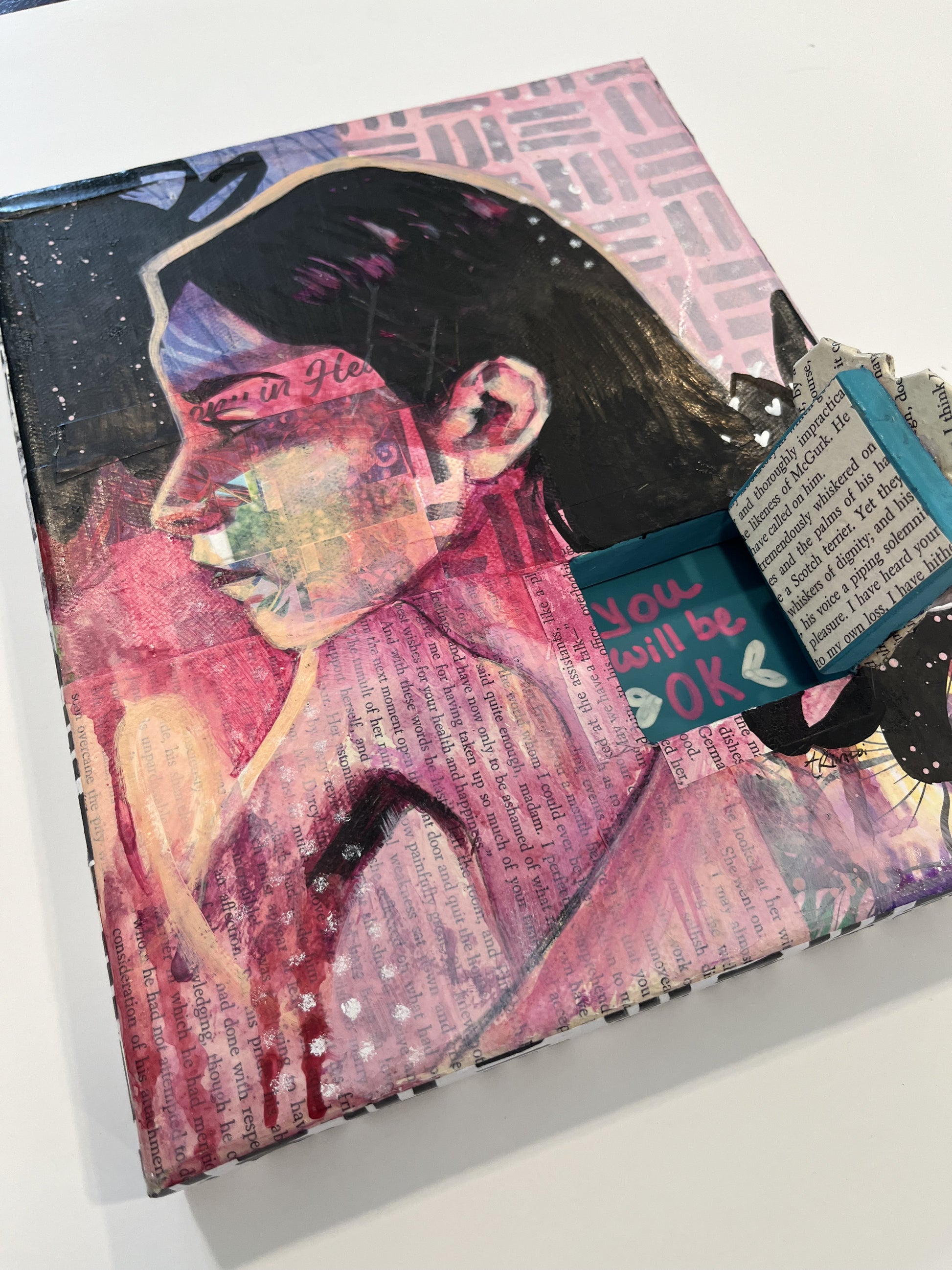 ✨You Will Be Ok✨- 8”x10” acrylic mixed media painting on canvas with a secret hidden door displaying the message “You Will Be Ok”. Painting comes ready to hang with sawtooth hanger.